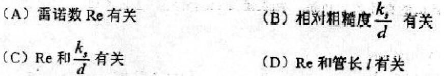 问题 圆管查流粗糙区(阻力平方区)的沿程摩阻系数λ与:
