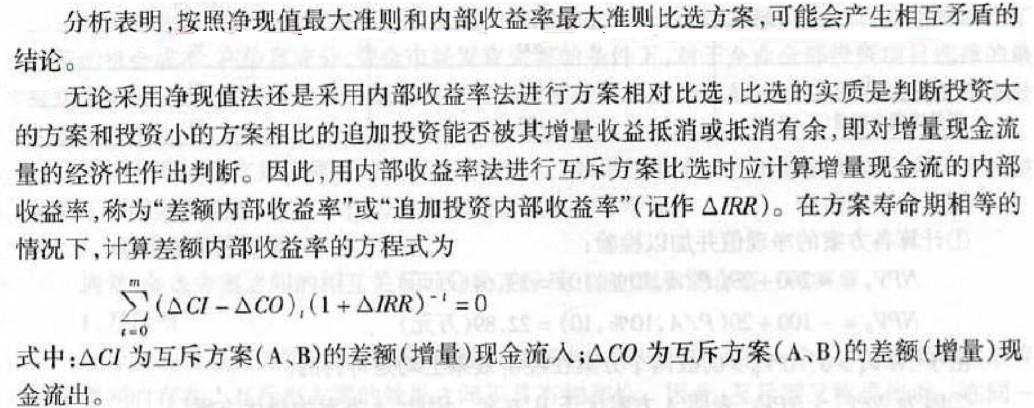 采用净现值(NPV)、内部收益率(IRR)和差额内部收益率(ΔIRR)进行互斥方案比选,它们的评价结论是:(A) NPV和ΔIRR总是不一致的 (B)...