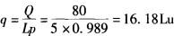 解析 根据《水利水电工程钻孔压水试验规程》(SL 31—2003)第3. 2. 3 ~ 4条,压力计中心至压力计算零线的水柱压力px=10×(24. 8×cos50° +0.5) =0. 129 MPa;根据第 6. 0. 5 条,试验段最大压力阶段 p=p3+px-ps=0. 90+0.129 -0. 04 =0. 989 MPa,则透水率