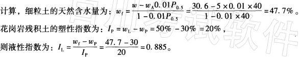 已知花岗岩残积土土样的天然含水量w=30.6%,粒径小于0.5mm细粒土的液限wL= 50%,塑限wp=30%。粒径大于0.5mm的颗粒质量占总质量的百分...