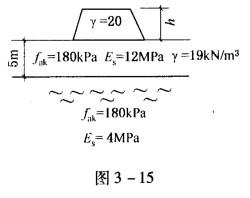 问题 高速公路连接线路平均宽度25m,硬壳层厚5.0m,fak=180kPa,Es=12MPa,重度y= 19kN/m3,下卧淤泥质土,fak =80kPa, Es =4MPa,路基重度 20kN/m3,如图 3 - 15 所示。在充分利用硬壳层,满足强度条件下的路基填筑最大高度最接近下列哪个选项? ( ) A. 4.0m B. 8.7m C. 9.0m D. 11.0m