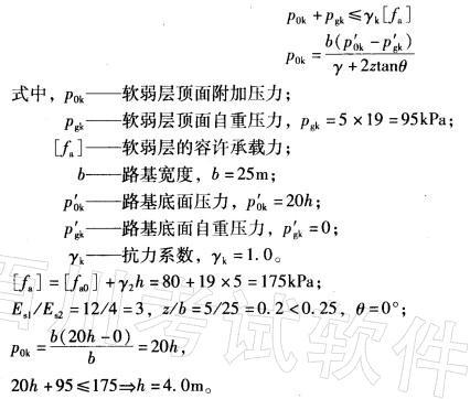 高速公路连接线路平均宽度25m,硬壳层厚5.0m,fak=180kPa,Es=12MPa,重度y= 19kN/m3,下卧淤泥质土,fak =80kPa, ...