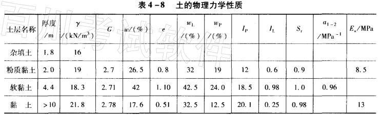 某建筑物的地质剖面及土性指标如图4 -37和表4-8所示。柱基顶面承受的最大荷载特征值为:轴力P= 2040kN,弯矩M = 320kN·m,剪力T= 5...