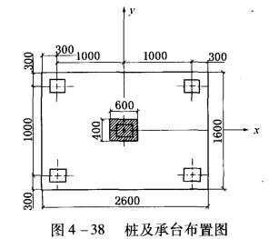 问题 某建筑物的地质剖面及土性指标如图4 -37和表4-8所示。柱基顶面承受的最大荷载特征值为:轴力P= 2040kN,弯矩M = 320kN·m,剪力T= 56kN。根据方案比较择优选择了钢筋混凝土打入桩基础。采用平面尺寸为300mm×300mm的预制钢筋混凝土方桩。基础顶面高程为地表下0.8m,根据地质条件,确定第四层硬塑黏土为桩尖持力层。桩尖进入持力层1.55m,桩长8.0m,承台底面埋深1. 8m。桩数n=5根,边桩中心至承台边缘距离是d=0.3m,布置见图4-38所示。承台底面尺寸1. 6m×2. 6m。桩顶伸入承台50mm,钢筋保护层取35mm。建筑场地地层条件如下: ①粉质黏土层IL=0.6,取qsk=60kPa; qck =430kPa; ②饱和软黏土层:因e= 1. 10,属于淤泥质土,取qsk=26kPa; ③硬塑黏土层:IL=0.25,取qsk=80kPa,端土极限承载力标准值qpk=2500kPa。 试分析回答下列问题: (1)若不考虑群桩效应,则可计算得单桩竖向承载力特征值约为( )kN。 A. 367 B. 328 C. 429 D. 583