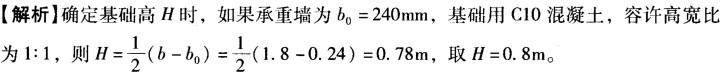 问题 某条形基础上荷载标准值Fk=160kN/m,基础布置和地基上层断面如图5-7所示,基础的埋置深度d = 1.60m,采用振冲砂石桩置换法处理淤泥质粉质黏土。砂石桩长7.0m(设计地面下8. 2m),直径d=800mm,间距s=2.0m,等边三角形排列。 (5)求此条形基础的高度最接近于( )m。 A. 0.8 B. 1.5 C. 2.5 D. 4.0