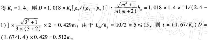 问题 某高30m碾压式土石坝,迎水面坝坡坡率为1:3,护坡石料相对密度为2.4t/m3,库水平均波长为10m,累积频率为5%时的坡高为2. 0m,则合适的护坡厚度为( )m。 A. 0. 4 B. 0.5 C. 0. 6 D. 0.8