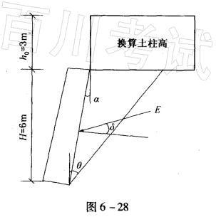 高6m的建筑物路堤挡土墙,如图6-28所示。已知墙背倾角α=9°,墙后填土y= 18kN/m3,φ=40%,δ=20°,填土破裂角θ= 31°08′,填土...