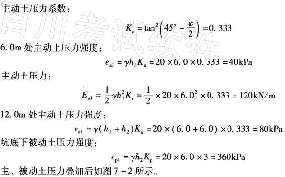 解析 根据《建筑基坑支护技术规程》(JGJ 120—1999)第4. 1. 1条,计算步骤如下: 被动土压力系数: