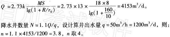 解析 根据《建筑基坑支护技术规程》(JGJ 120—1999)附录F第F. 0.3条,均质含水层承压水完整井涌水量: