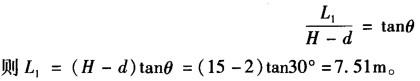 问题 某场地中有一土洞,洞穴顶面深15m, 土体主力扩散角为30°,基础埋深为2.0m,该建筑物基础边缘距该洞应不小于( )m。 A. 1.2 B. 5.3 C. 7.5 D. 8.7