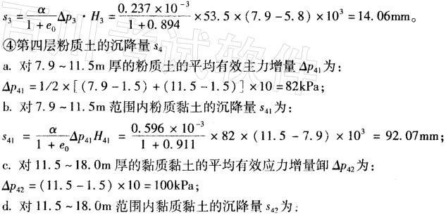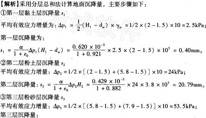 解析 采用分层总和法计算地面沉降量,主要步骤如下: