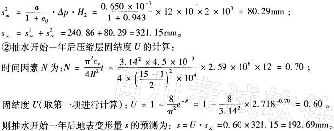 解析 沉降值计算步骤具体如下: ①地表最终变形量s∞的计算: 把黏土层的沉降量划分为1~13m和13~15m两层计算,