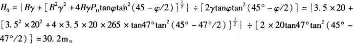 解析 根据《工程地质手册》有关要求计算如下: ①单位长度顶板上的压力Q为: Q =G+BP0-2f=yH[B-Htanφtan2(45°-φ/2)]+BP0=20×42×[3. 5 - 42tan47°tan2(45°-47°/2) ]+3. 5×265=-2002.90kPa。 巷道顶板压力小于零、顶板不受压力。 ②顶板的临界深度为: ③顶板稳定性为: H=42-1.5=40.5m,H0=30.2m,1.5H0=45.45m,则: H0<H<1.5H0,地基稳定性差。 即该小窑采空区顶板不受力Q<0,顶板地基稳定性差。