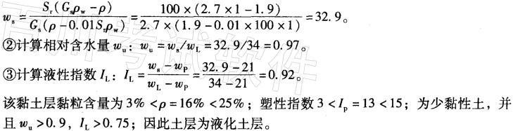 解析 根据《水利水电工程地质勘察规范》(GB 50487 — 2008)附录P第P.0.4条,分析步骤如下: ①计算少黏性土的饱和含水量ws: