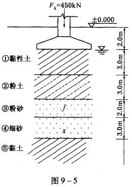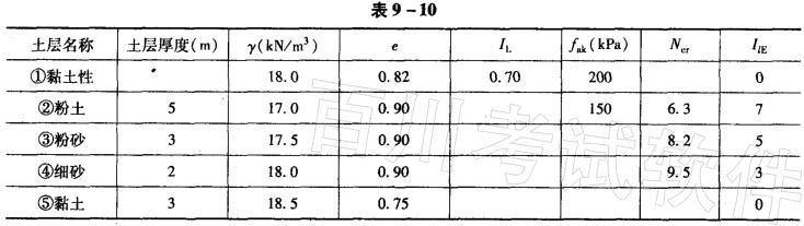 某建筑物抗震设防类别为丙类,所采用条形基础宽度b=2.0m,埋深2.0m,地基剖面如图9-5所示,场地土层勘察资料如表9-10所示。作用在基础顶面的竖向荷...