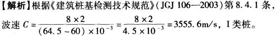 问题 人工挖孔嵌岩灌注桩桩长为8m,其低应变反射,波动力测试曲线如图10-4所示。问该桩桩身完整性类别及桩身波速值符合下列哪个选项的组合?( ) A. I 类桩,C=1777.8m/s B. II类桩,C=1777.8m/s C. I 类桩,C=3555.6m/s D. II类桩,C=3555.6m/s