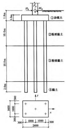 假设某工程中上部结构传至承台顶面处相应于荷载效应标准组合下的竖向力Fk=10000kN、弯矩Mk=500kN?m、水平力Hk=100kN,设计承台尺寸为1...