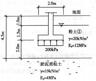 如图所示,条形基础宽度2.0m,埋深2.5m,基底总压力200kPa,按照现行《建筑地基基础设计规范》,基底下淤泥质粘土层顶面的附加应力值最接近下列哪个选...