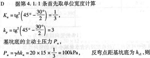 在均匀砂土地基上开挖深度15m的基坑,采用间隔式排桩+单排锚杆支护,桩径1000mm,桩距1.6m,—桩一锚。锚杆距地面3m。已知该砂土的重度γ=20kN...