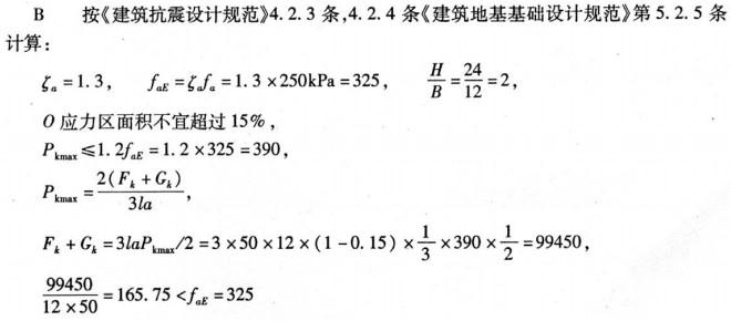 某8层建筑物高24m,筏板基础宽12m,长50m,地基土为中密一密实细砂,深宽缝正后的地基承载力特征值fa=250kPa。按《建筑抗震设计规范》(GB50...