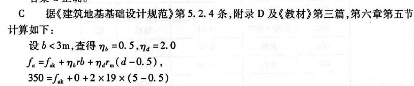 如图所示,某砖混住宅条形基础,地层为粘粒含量小于10%的均质粉土,重度19kN/m3,施工前用深层载荷试验实测基底标高处的地基承载力特征值为350kPa,...