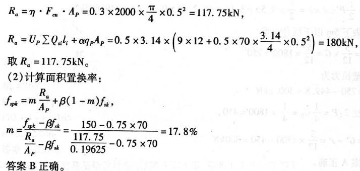 解析 据《建筑地基处理技术规范》,第11. 2.4条和第9. 2. 5条计算如下。 (1)确定单桩承载力: