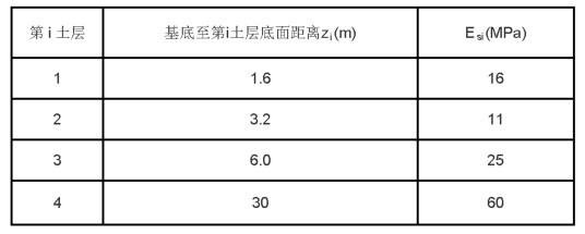某独立柱基尺寸为4mX4m,基础底面处的附加压力为130kPa,地基承载力特征值fak =180kPa,根据下表所提供的数据,采用分层总和法计算独立柱基的...