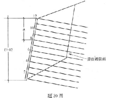 某风化破碎严重的岩质边坡高H=12m,采用土钉加固,水平与竖直方向均为每间隔1m打一排土钉,共12排,如下图,按《铁路路基支挡结构设计规范》(TB1002...