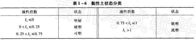 解析 根据《岩土工程勘察规范》(GB 50021 —2001 )(2009年版)第3. 3. 11条,黏性土的状态分类表,液性指数大于0且小于等于0.25的土处于硬塑状态。黏性土的状态根据液性指数IL划分为坚硬、硬塑、可塑、软塑和流塑,如表1-6所示。
