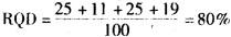 问题 用直径为75mm双管金刚石钻进岩石,1m进尺的岩芯长度分别为25cm、7cm、11cm、 3cm, 25cm, 19cm , 4cm、6cm,此段岩体的RQD是( )。 A. 25% B. 50% C. 80% D. 100%