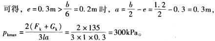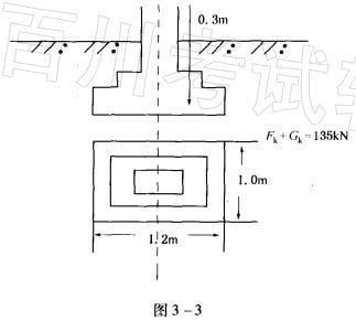 如图3-3所示,柱基底面尺寸为1.2m×1.0m,作用于基础底面的偏心荷载Fk + Gk = 135kN,当偏心距e为0.3m时基础底面边缘的最大压力Pk...