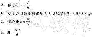 问题 已知矩形基础底面的压力为线性分布,宽度方向最大边缘压力为基底平均压力的1. 2 倍,基础的宽度为B,长度为L,基础底面积为A,抵抗矩为W,传至基础底面的竖向力为N,力矩为M,间下列哪些说法是正确的? ( )