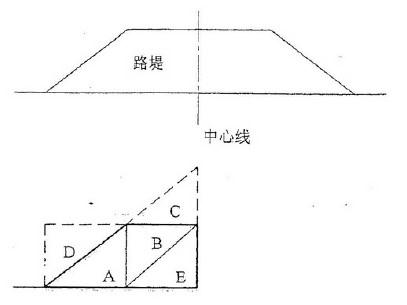 问题 根据《建筑地基基础设汁规范》(GB50007 -2002),用角点法叠加应力计算路堤中心线下的附加应力。对图示的路堤梯形荷载分布,可分解为三角形分布荷载和矩形分布荷载,分别查附加应力系数。下列哪个选项的叠加方法是正确的? (A)三角形A+矩形(B+E)(B)三角形(A + B + E+C) -三角形C (C)矩形(D+ A + B+E)-三角形D (0)矩形(D+ A + B+E)-三角形E