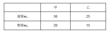 已知甲和乙两种土的试验数据如下,下列哪些选项的说法是正确的?( )A.甲土的孔隙比比乙土大 B.甲土的湿重度比乙土大C.甲土的干重度比乙土...