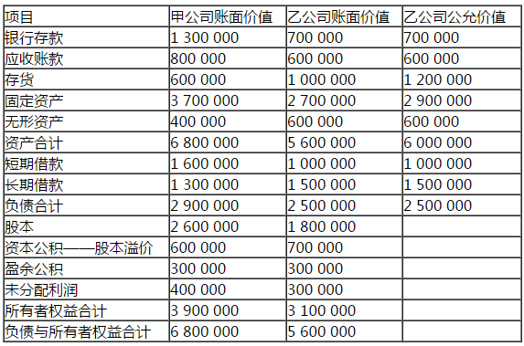 甲公司为扩大市场份额在2012年进行了一项兼并业务,有关资料如下:(1)2012年1月9日,甲公司吸收合并乙公司,向乙公司原股东按发行每股面值1元的股...