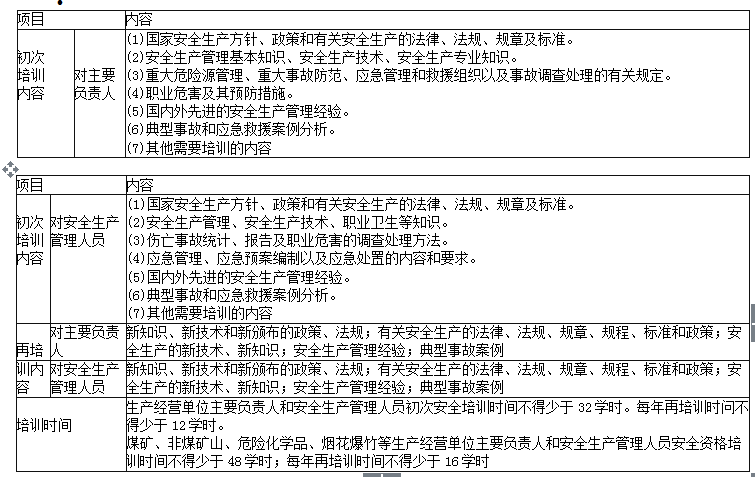 解析 本题考查的是培训时间,见表2—30中相关内容。 表2—30对主要负责人的培训内容和时间