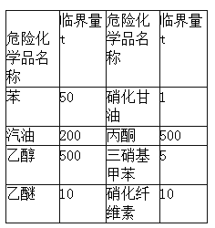 解析 丁库房的10t乙醚达到了临界量,属于易燃液体类重大危险源,故选项D错误:戊库房的5t三硝基甲苯达到了临界量,属于爆炸品重大危险源,故选项E错误;(300/500)+(100/200)=1.1>1,属于易燃液体类重大危险源,故选项A正确;(5/10)+(0.2/1)=0.7<1,不属于爆炸品类重大危险源,故选项B错误;(30/50)+(200/500)=1,属于易燃液体类重大危险源,故选项C正确。