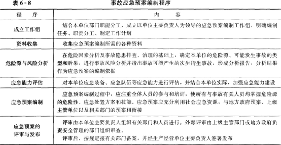 解析 本题考查的是应急预案编制程序,见表6-8。选项D错在应急预案编制完成后,只由本单位主要负责人组织有关部门和人员进行评审,还应有外部评审。