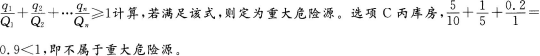 问题 某危险化学品生产经营单位有甲、乙、丙、丁四个库房,分别存放有不同类别的危险化学品,各库房之间距离均大于500m。依据下表给出的临界量,不属于重大危险源的库房是(  )。