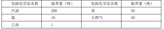 选项 A.储量 150 吨汽油储罐 B.储存 20 吨苯的库房 C.15 吨液氨储存罐区 D.储量为 55 吨的天然气站 E.储存 0.8 吨乙炔的工业气瓶储存区
