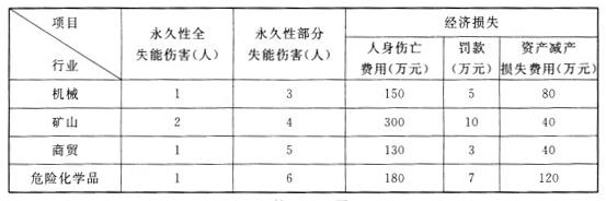 某市2013年度统计的四个行业发生事故的人员伤亡及经济损失如表所示,依据《事故伤害损失工作日标准》(GB/T15499-1995),依照永久性全失能伤害损...