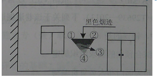 某单位发生火灾事故,经事故调查组现场勘查,发现一室内墙壁上有如下图所示的烟熏痕迹,根据火灾与爆炸事故调查技术分析方法,烟熏痕迹中可能的起火点是( )。 ...