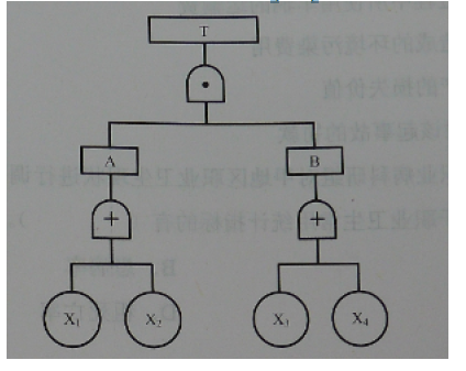 某起高处坠落事故的事故树分析如图所示,T代表高处坠落事故,A代表安全带未起作用,B代表脚手架栏杆缺失,X1为安全带功能损坏,X2为安全带未高挂低用,X3为...