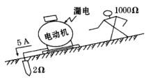 对于工频电流,人的感知电流约为0.5~1mA、摆脱电流约为5~10mA、室颤电流约为50mA。某事故现场如下图所示,电动机接地装置的接地电阻为2Ω;该电动...
