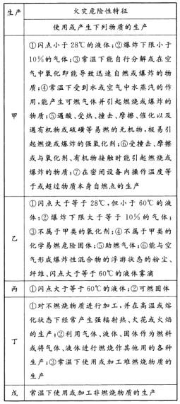 生产的火灾危险性根据生产中使用或产生的物质性质及其数量等因素,分为甲、乙、丙、丁、戊五类.如下表所示。氨的爆炸极限为15%~28%,因此选择B。