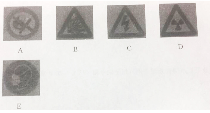 问题 B企业为金属加工企业,主要从事铝合金轮毂加工制造。 B企业的铝合金轮毂打磨车间为二层建筑,建筑面积2000m2,南北两端各设置载重2.5t的货梯和敞开式楼梯,一层有通向室外的钢制推拉门2个,该车间共设有32条生产线,一、二层各16条,每条生产线设有12个工位,沿车间横向布置,总工位数384个,相邻工位最小间距不足1m。 打磨车间每个工位设有吸尘器,每4条生产线含有1套除尘系统,共安装有8套除尘系统。8套除尘系统的室外风管相互连通并共用一条主排风管将粉尘排出,车间内的除尘设备、除尘管道及配电箱等均未采取接地措施。 2015年“安全生产月”期间,属地人民政府安全生产监督管理部门检查组对B企业进行安全生产检查,发现打磨车间空气中粉尘浓度超标,部分地面和粉尘管道表面积尘厚度达2mm以上,部分员工佩戴的防尘口罩失效,个别工位旁地面发现烟蒂,部分女工长发未至于工作帽内,检查组对上述问题提出了批评,提醒B企业要做好员工劳动防护等各项工作。 7月2日8时,打磨车间265名员工开始工作,其中含7月1日入职但未经培训的员工12人。8时5分,除尘风机开启。9时34分,1号除尘器集尘桶发生爆炸,爆炸冲击波沿除尘管道传播,扬起了除尘系统内和车间聚积的铝粉,形成粉尘云,引发连续爆炸,当场造成9人死亡,事故发生后7天内,又有18名重伤人员在医院死亡;事故发生后30天内,死亡人数32人,受伤人数195人。 事故的经济损失包括:现场抢救、清理现场和处理事故的事务性费用280万元,设备等固定资产损失1000万元,医疗费用(含护理费用)2900万元,丧葬及抚恤费用3500万元,补助及救济费用2100万元,歇工工资800万元,停产损失1800万元,事故罚款1100万元。 事故调查发现:该车间粉尘系统长时间未清理粉尘,铝粉尘大量聚积。除尘系统风机开启后,打磨产生的高温铝粉尘颗粒在集尘桶上方形成粉尘云。1号除尘器集尘桶锈蚀破损,雨水渗入,桶内铝粉受潮,发生氧化放热效应,达到了铝粉尘的点燃温度,引发除尘系统及车间内粉尘的系列爆炸,除尘系统未设泄爆装置,爆炸产生的高温气体和燃烧物瞬间经除尘管道从各吸尘罩喷出,导致全车间几乎所有工位操作人员直接受到爆炸冲击。同时,B企业盲目组织生产,未建立岗位安全操作规程,五隐患排查治理台账,员工对铝粉尘存在的爆炸危险性没有认知,也从未参加过应急救援演练。 打磨车间应设置的安全标志有(  )。