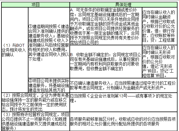 解析 A BOT参与公共基础设施建设业务具体处理 项目 具体处理: