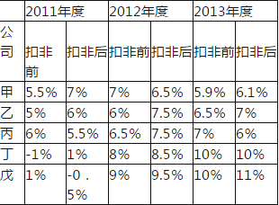 甲、乙、丙、丁、戊均是主板上市公司,拟于2014年3月发行可转换公司债券,2011年、20112年,2013年加权平均净资产收益率如下表: ...