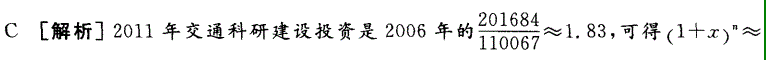 问题 2011年,纳人统计的交通运输科技机构共完成科研基础条件建设投资20. 2亿元,比上年 增长19.3%。其中,基本建设资金达15.0亿元,占投资总规模的74. 5%,所占比重较上年提 高5. 7个百分点;科研经费中科研设备投资完成5. 1亿元,与上年相比基本持平,占投资总规 模的25.5%。 2007年一2011年交通科研建设投资年平均增长率约为( )。 A. 9% B. 11% C. 13% D. 16%