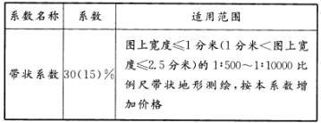 解析 根据《测绘工程产品价格》,1:500~1:2000比例尺带状地形测绘项目成本费用核算“带状系数”按下表执行。
